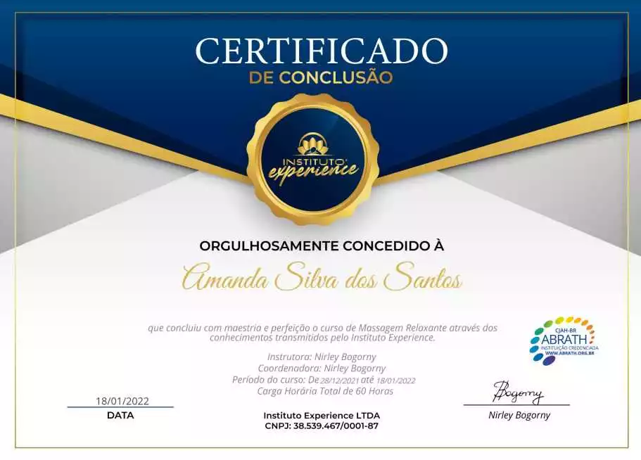 Sou especializada em diversas técnicas de massagens, que são perfeitas para o equilíbrio do corpo e da mente. Meu atendimento é diferenciado totalmente personalizado, conforme a necessidade de cada pessoa.